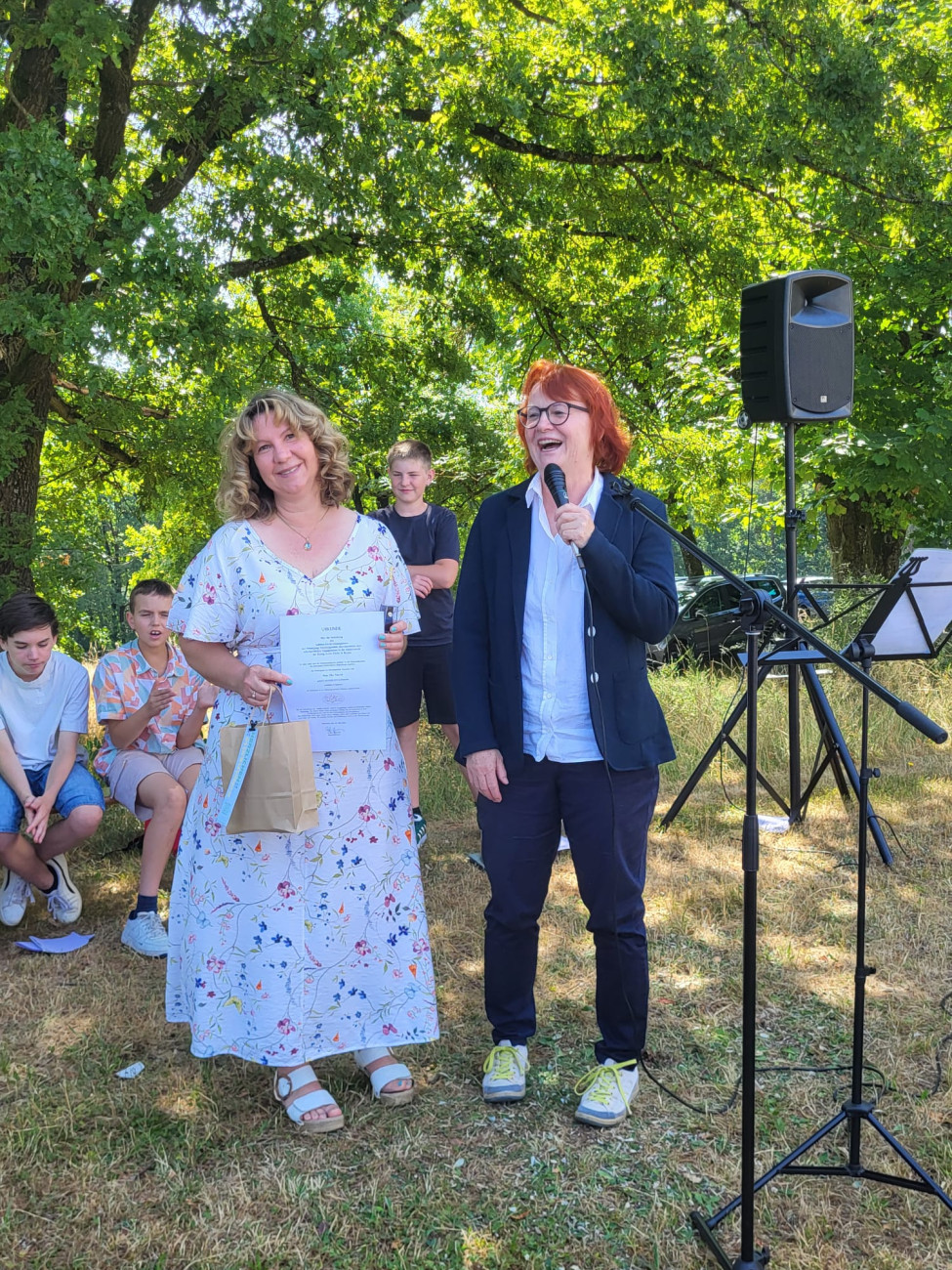 Im Gottesdienst der evangelischen Kirchengemeinden Pyrbaum, Allersberg und Ebenried auf dem Möninger Berg verlieh Dekanin Murner Elke Fischer aus Pyrbaum den Soli Deo Gloria Preis für ihr ehren- und nebenamtliches kirchenmusikalisches Engagement. Seit 1992 gestaltet Elke Fischer Gottesdienste in Pyrbaum, der Region und Neumarkt musikalisch. Seit 2022 leitet die das Vocalensemble Pyrbaum, das projektbezogen auftritt.